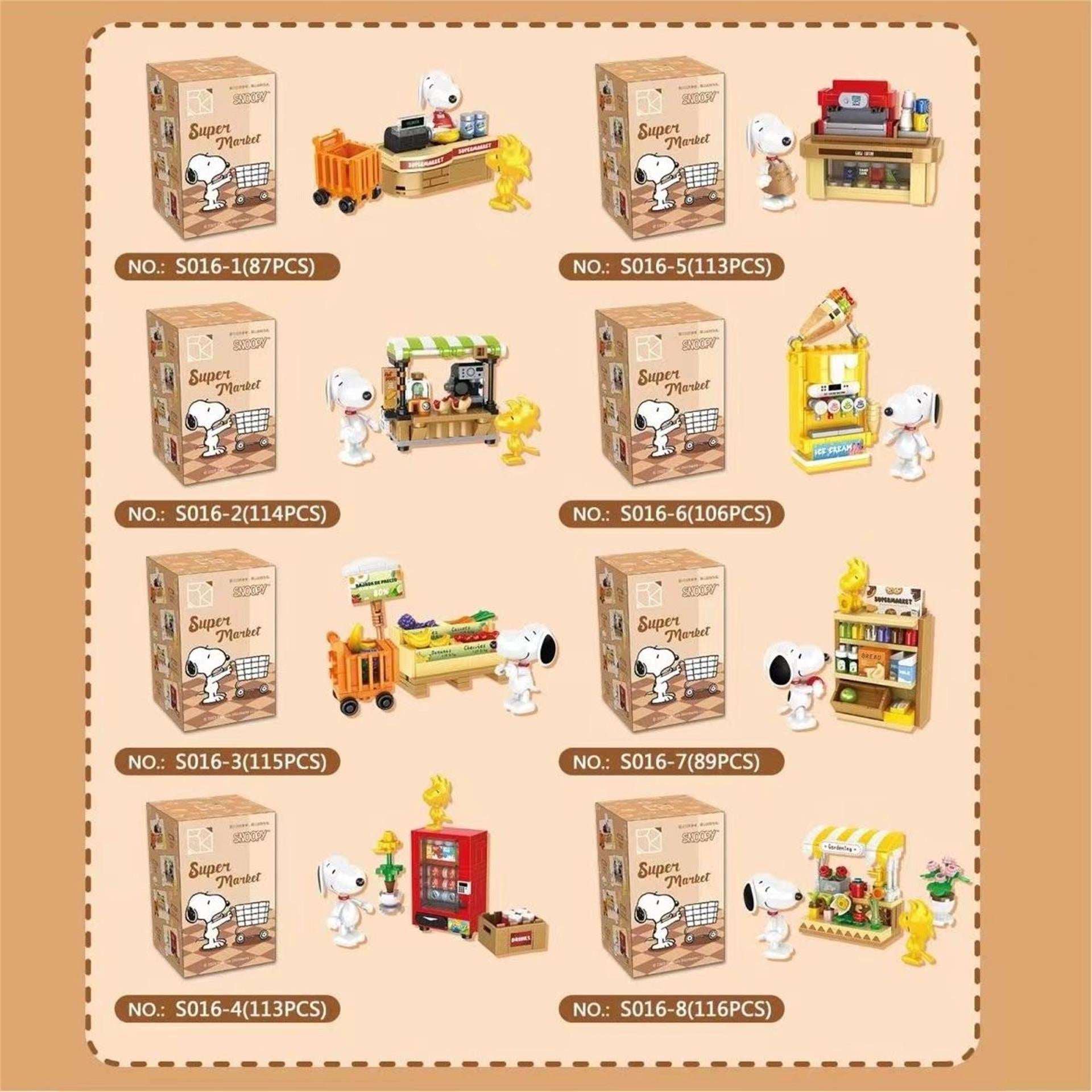 Blind Box Series Snoopy supermarket random 8 Packs Mini Shop View Building Blocks kit